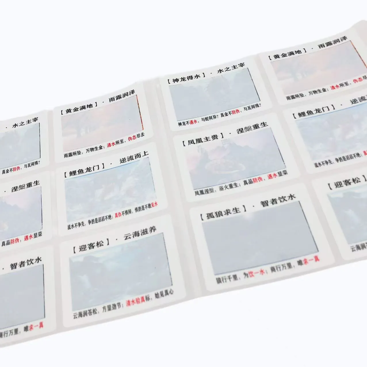 پانی کی ایک چھوٹی سی چھلکیاں لیبل کے ردعمل کو چالو کرنے میں لی جاتی ہیں۔ ہلکا وزن اور پورٹیبل ، لیبل کو مختلف شکلوں میں بنایا جاسکتا ہے جیسے کارڈ اور فوری فوٹو اسٹائل پرنٹس۔جوجو پیکحسب ضرورت خدمات مہیا کرتا ہے ، ہم لیبلوں پر کارٹون پیٹرن ، برانڈ لوگو ، پروموشنل مواد ، اور بہت کچھ پرنٹ کرسکتے ہیں۔ وہ تہوار کے گریٹنگ کارڈز ، بچوں کے تعلیمی کھلونے ، برانڈ مارکیٹنگ ، اینٹی کاؤنٹرنگنگ اور دیگر درخواستوں کے لئے مثالی ہیں۔