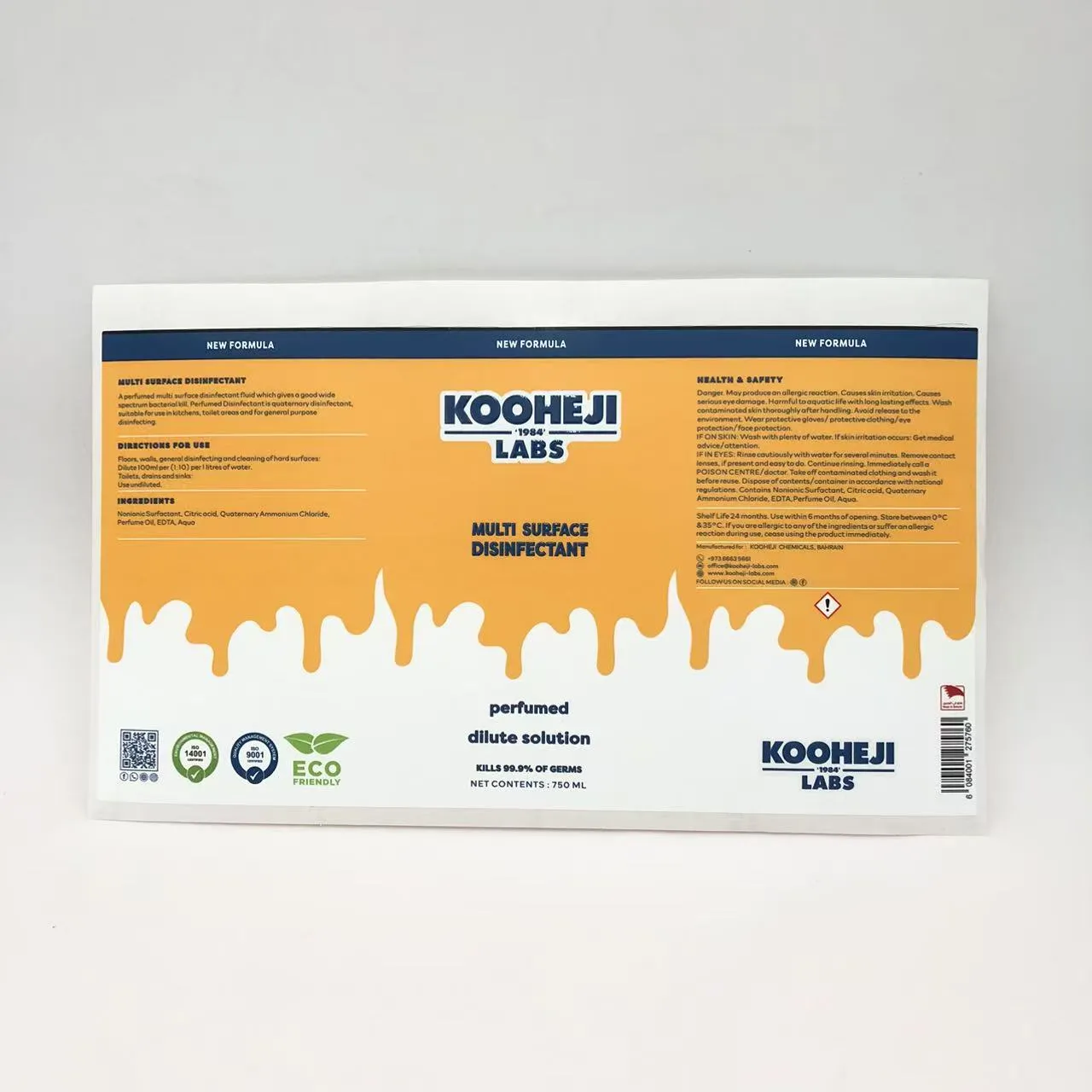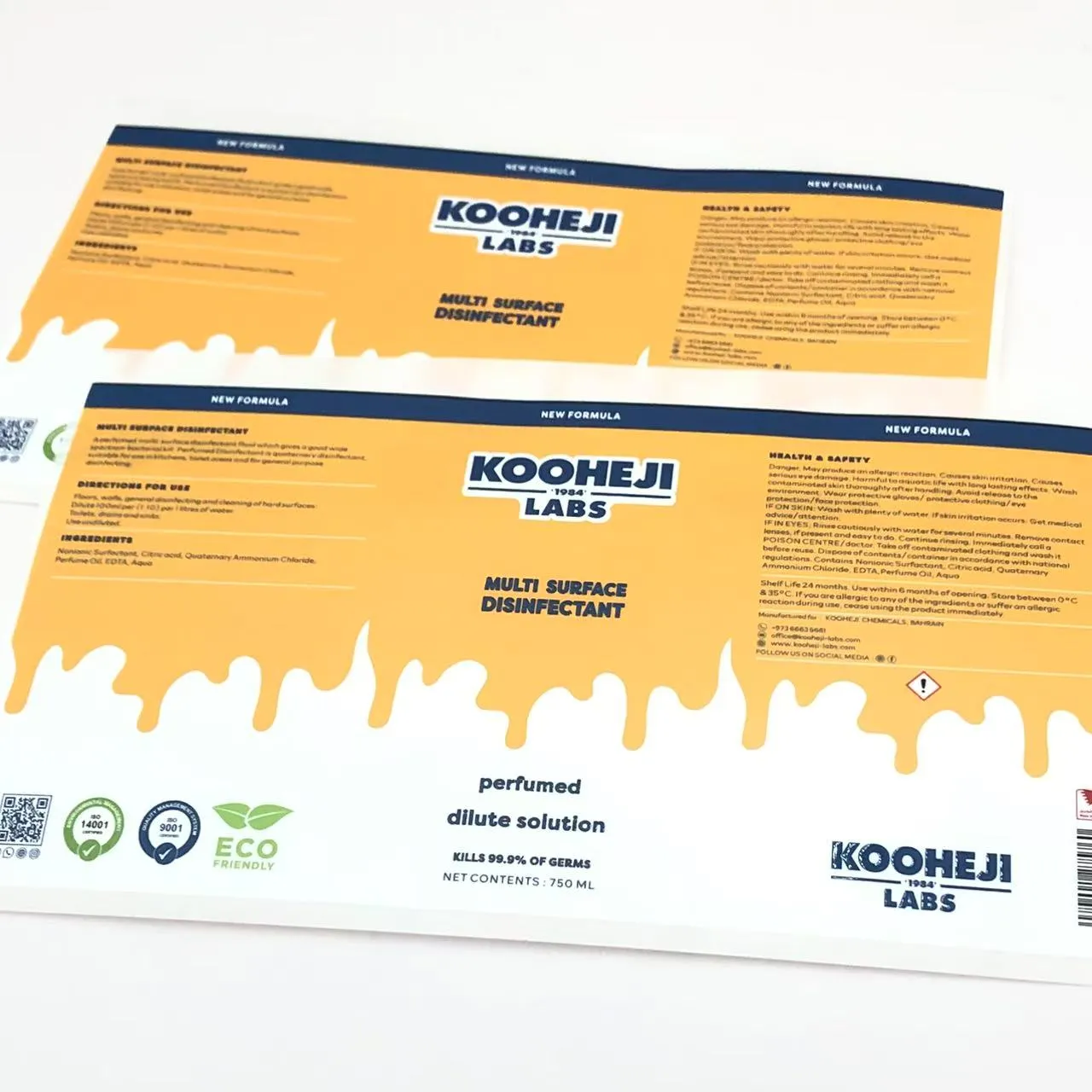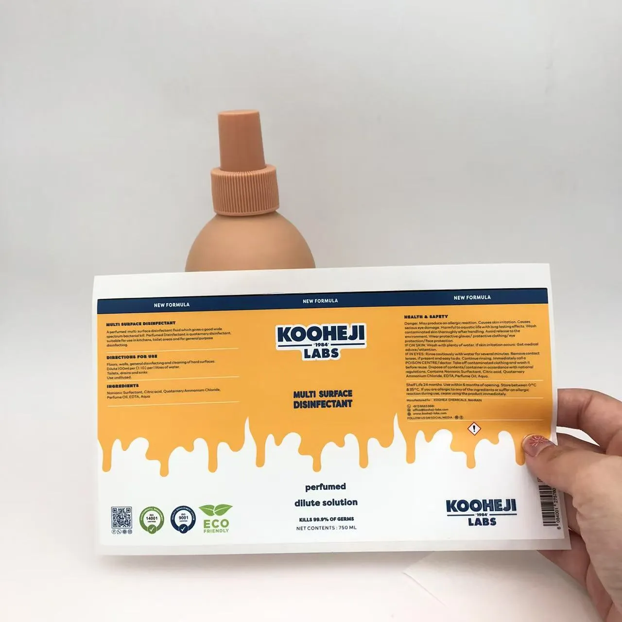 ڈس انفیکٹینٹ بوتل پیکیجنگ لیبل کی تفصیل ’OEM/ODM سروس