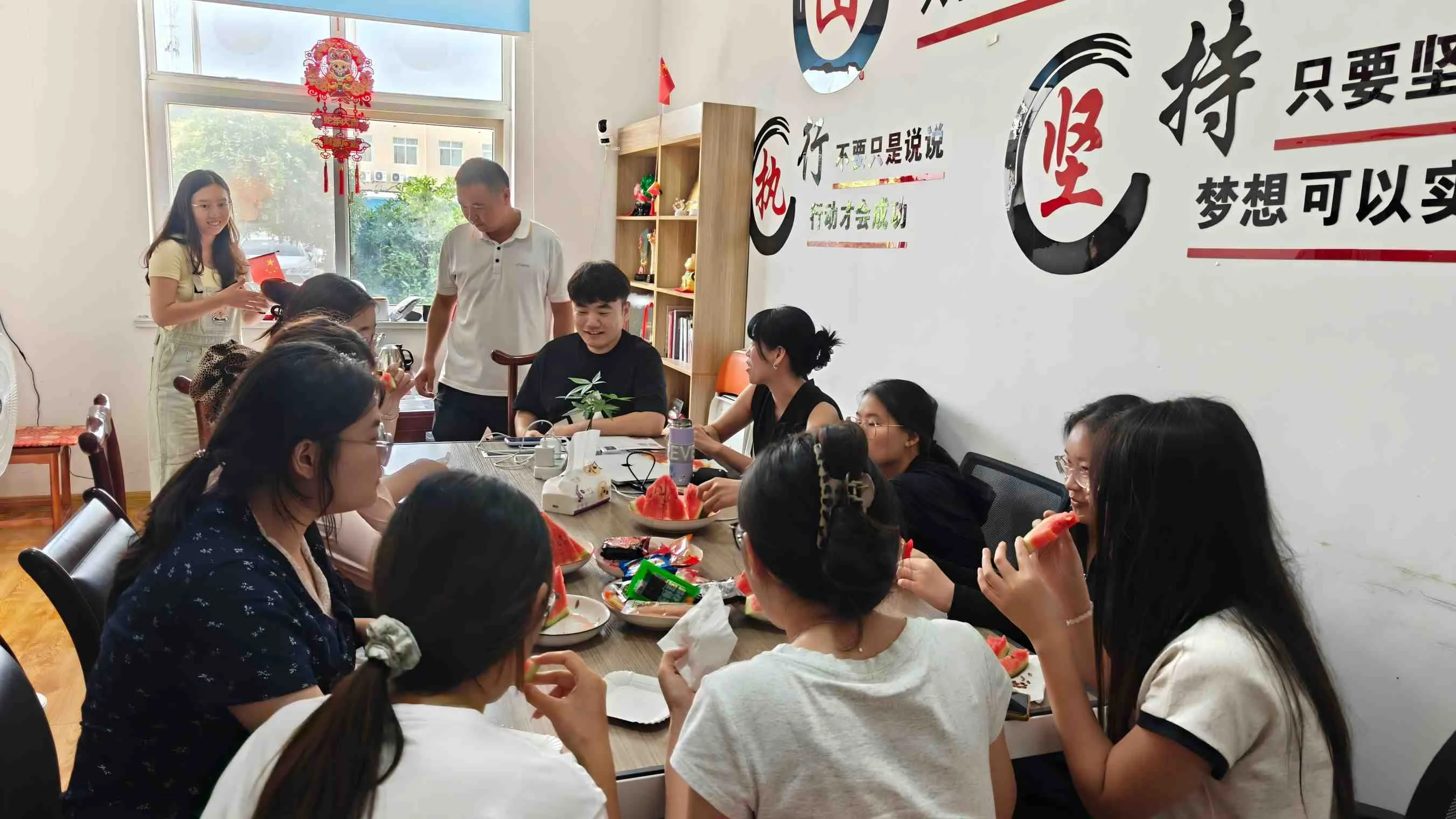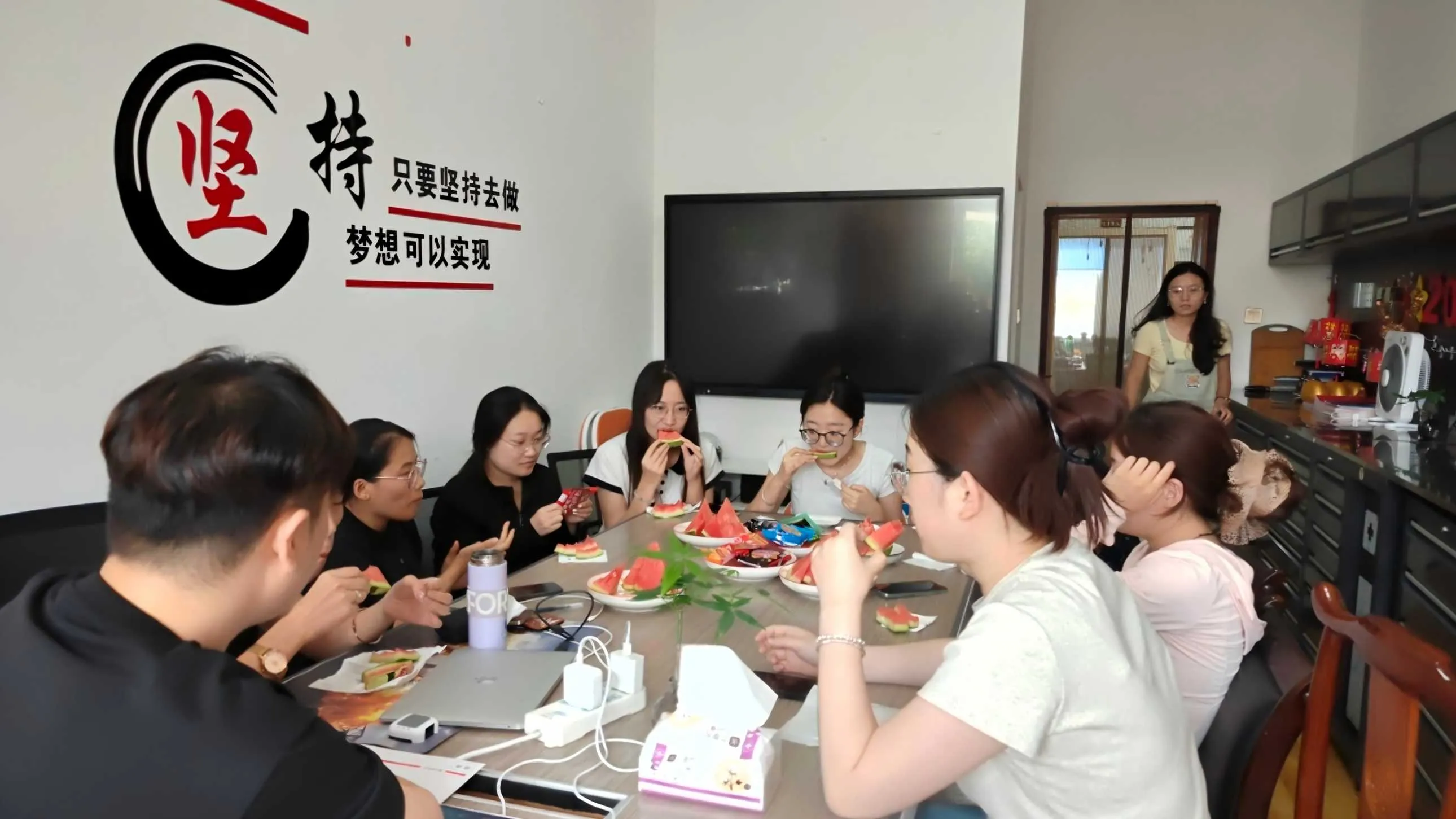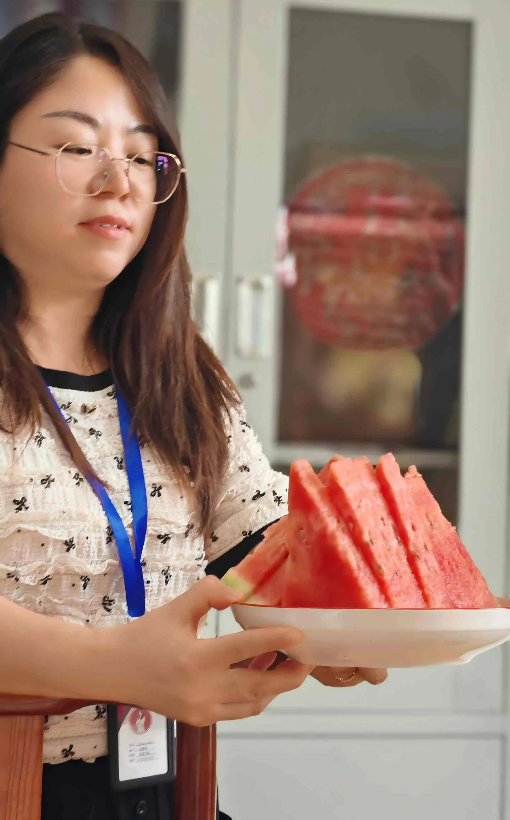 ایونٹ سائٹ پر ، مختلف قسم کے نمکین صاف طور پر ظاہر کیے گئے تھے ، جس میں کرسٹی گری دار میوے ، میٹھے خشک میوہ جات سے لے کر مختلف شاندار پیسٹری تک شامل تھے۔ امیر اور متنوع نمکین ہر ایک کی مختلف ذائقہ کی ترجیحات کو پورا کرتے ہیں۔ اور سب سے زیادہ چشم کشا شے فرج کا تازہ ترین واٹرلون تھی۔ تربوز کی سبز جلد کو روشن سرخ گوشت کے گرد لپیٹا گیا تھا ، اور جیسے ہی اسے کھلا کاٹا گیا تھا ، جوس پھیل گیا اور ایک میٹھی خوشبو ان کی طرف بڑھ گئی۔ یہ گرم موسم گرما میں سب سے مشہور "کولنگ ٹول" بن گیا۔ ملازمین گروہوں میں بیٹھے ، تربوز کو اپنے ہاتھوں میں تھامے اور ناشتے کو چکھا رہے تھے ، اور چیٹنگ کی آرام دہ آوازیں اور خوشگوار ہنسی مستقل طور پر اٹھتی اور گر رہی تھی۔ آفس کا پورا علاقہ خوشی کے ماحول سے بھرا ہوا تھا۔